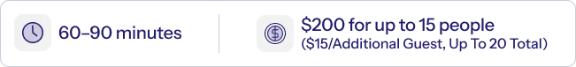 20–30 minutes for socializing, snacks, or your own activities